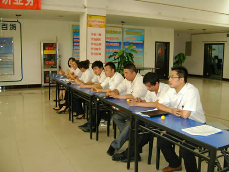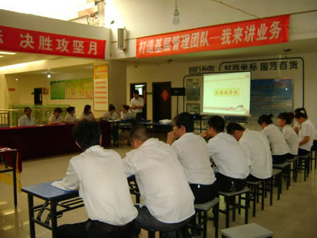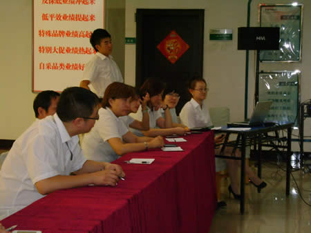 經過兩番試卷考核之后,于2011年6月22日下午15:00時進行了第一場實操PK賽——我來講業務部分的競技。此次比賽均采用現場電腦隨機抽題,比賽人員現場準備現場作答。業務展示題目涉及到賣場基層管理人員最核心、最基本的崗位知識、技能和職業素養,如促銷管理、員工管理、VIP顧客管理、目標責任管理等。