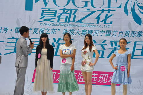 倍受關(guān)注的2012國(guó)芳百貨•國(guó)際“夏都之花”旅游形象推廣大使暨西寧國(guó)芳百貨形象代言人選拔大賽初賽將于2012年6月9號(hào)、10號(hào)下午2:30分在國(guó)芳百貨拉開(kāi)帷幕。繼之前成功舉辦的為期兩天的海選活動(dòng),將近兩百多名參賽選手中成功入闈80名佳麗進(jìn)入初賽。