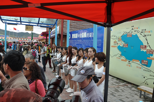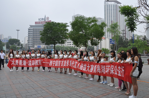 清晨伊始,30名美麗的佳麗們身著統一服裝,在中心廣場進行青海湖環保公益行啟動活動。靚麗的身影與極具號召力的主題吸引了廣大市民的圍觀和拍照。