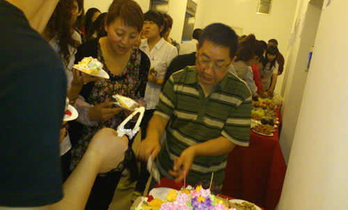 15、職能部門(mén)冷餐會(huì),大家分享著美味的蛋糕和甜點(diǎn)。