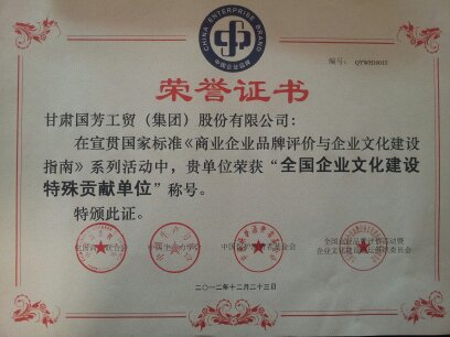 國芳集團在此次發布會上榮獲“2012年全國企業文化建設特殊貢獻單位”稱號,這也是依據中華人民共和國第一部關于企業文化建設國家標準,綜合考評的首批全國企業文化建設優秀企業。這是評選組委會對國芳集團多年來在企業文化建設工作成果的巨大肯定,也是國芳集團全體員工在2012年全年度辛勤工作的最好回報。