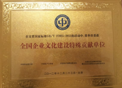 2012年度“全國企業文化建設特殊貢獻單位”榮譽獎牌