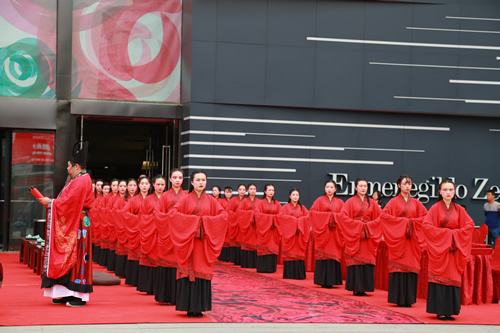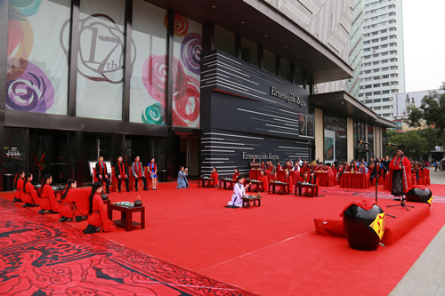 國芳集團十七周年司慶大型文化活動——漢式迎賓禮于9月3日上午8時30分,在國芳百貨正西門正式上演。除集團各分子公司管理人員外,還邀請了與國芳集團合作多年的數十名供應商代表一同出席此活動。