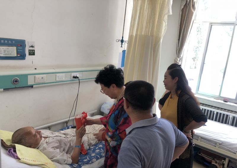 “這是公司的一點心意,希望能幫助你們度過難關…”6月28日下午,甘肅國芳工貿(集團)股份有限公司董事會董事、財務總監兼工會主席,人力資源總監以及黨委常務副書記一行人驅車趕往蘭州大學第一醫院東崗院區,慰問公司患病職工閆世忠,并代表公司送上愛心捐款50000元,令閆世忠及其家人備受感動和鼓舞。