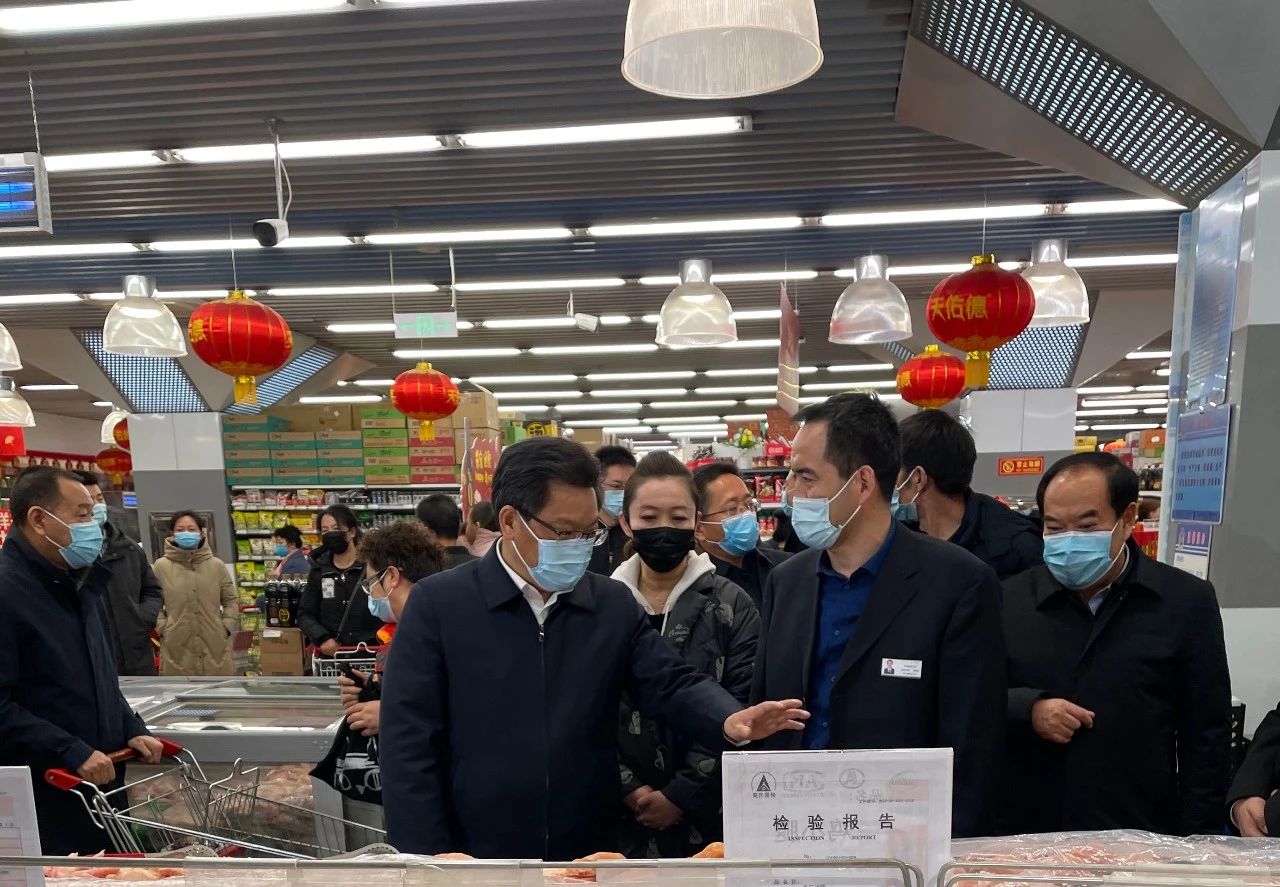 2月10日,甘肅省委副書記、省長任振鶴,甘肅省委常委、蘭州市市委書記李榮燦,甘肅省政府秘書長李志勛,甘肅省市場監管管理局局長王忠習,蘭州市市長張偉文等省市領導一行調研指導春節保障供應及慰問超市一線員工。