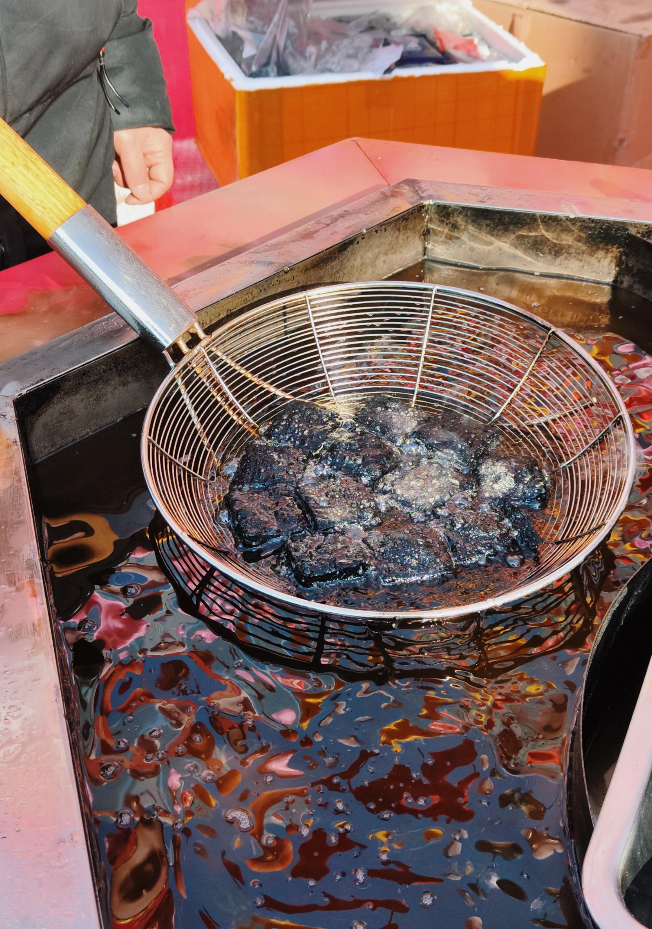 人間煙火處,年味漸濃時(shí)。新疆羊肉串、冰糖葫蘆、臭豆腐、酸辣粉、網(wǎng)紅大面筋,蘭州熱冬果……小吃攤生起騰騰熱氣,飄香十里。