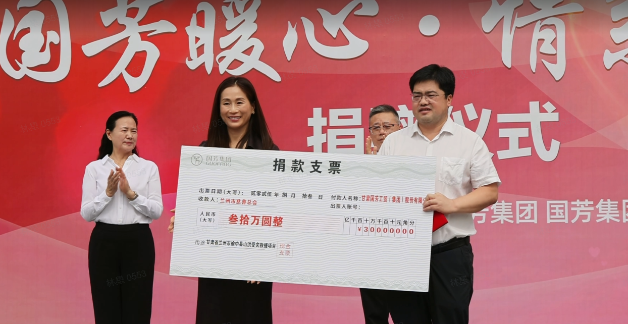 2025年8月14日,甘肅國芳工貿(集團)股份有限公司舉行“國芳暖心 情系榆中”——捐贈儀式,在東方紅廣場蘭州國芳百貨正西門隆重舉行,集團各子(分)公司員工踴躍參與,以集體之力匯聚愛心暖流,用實際行動為榆中縣受災地區注入溫情與動力。